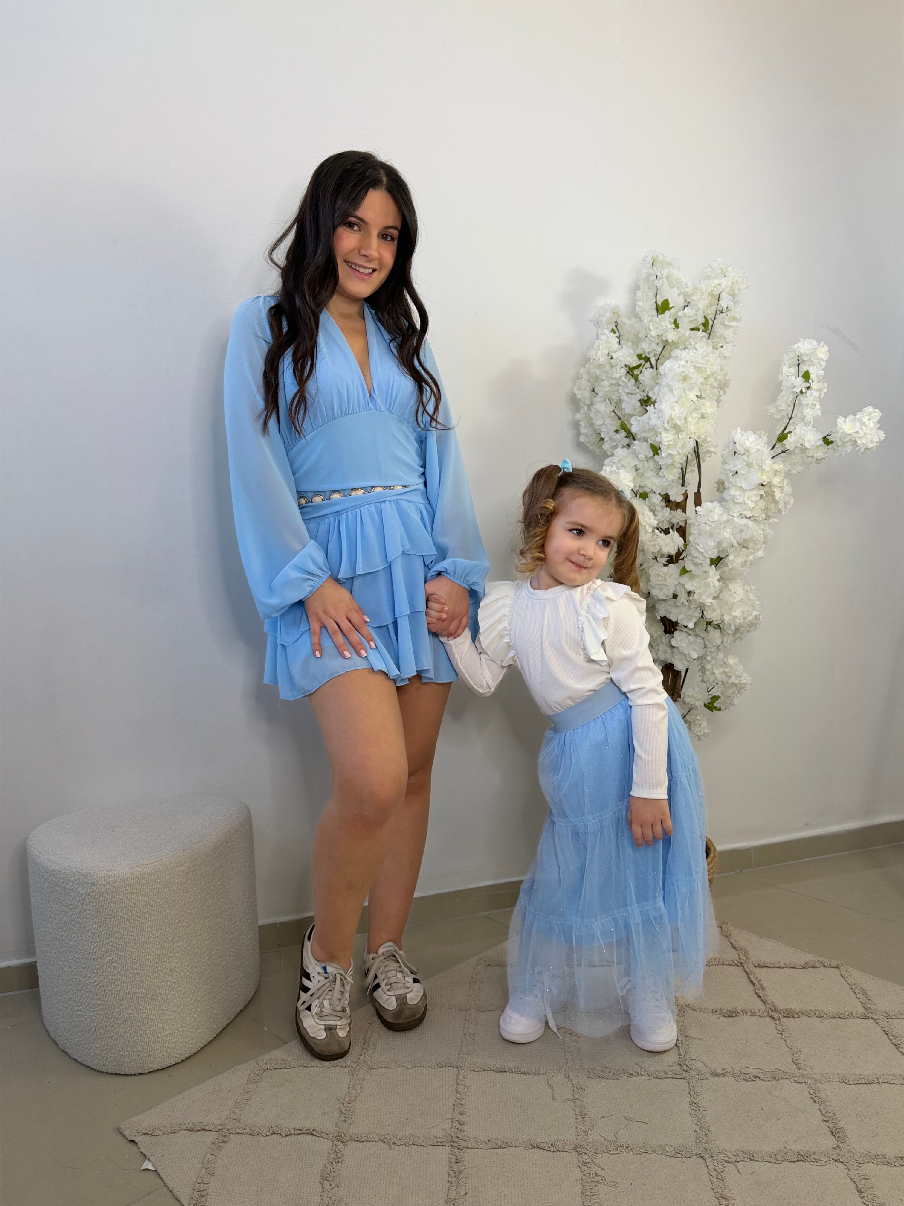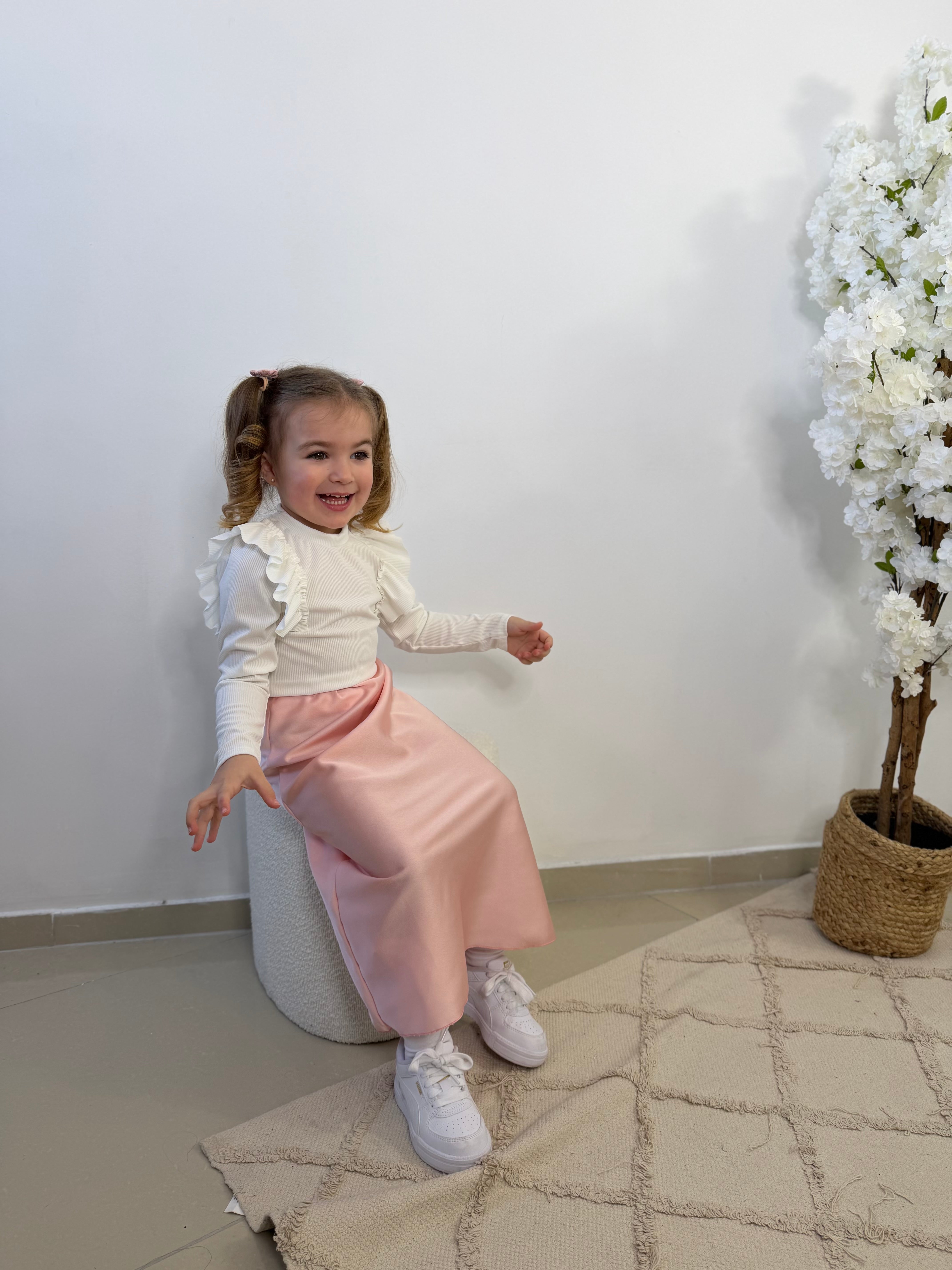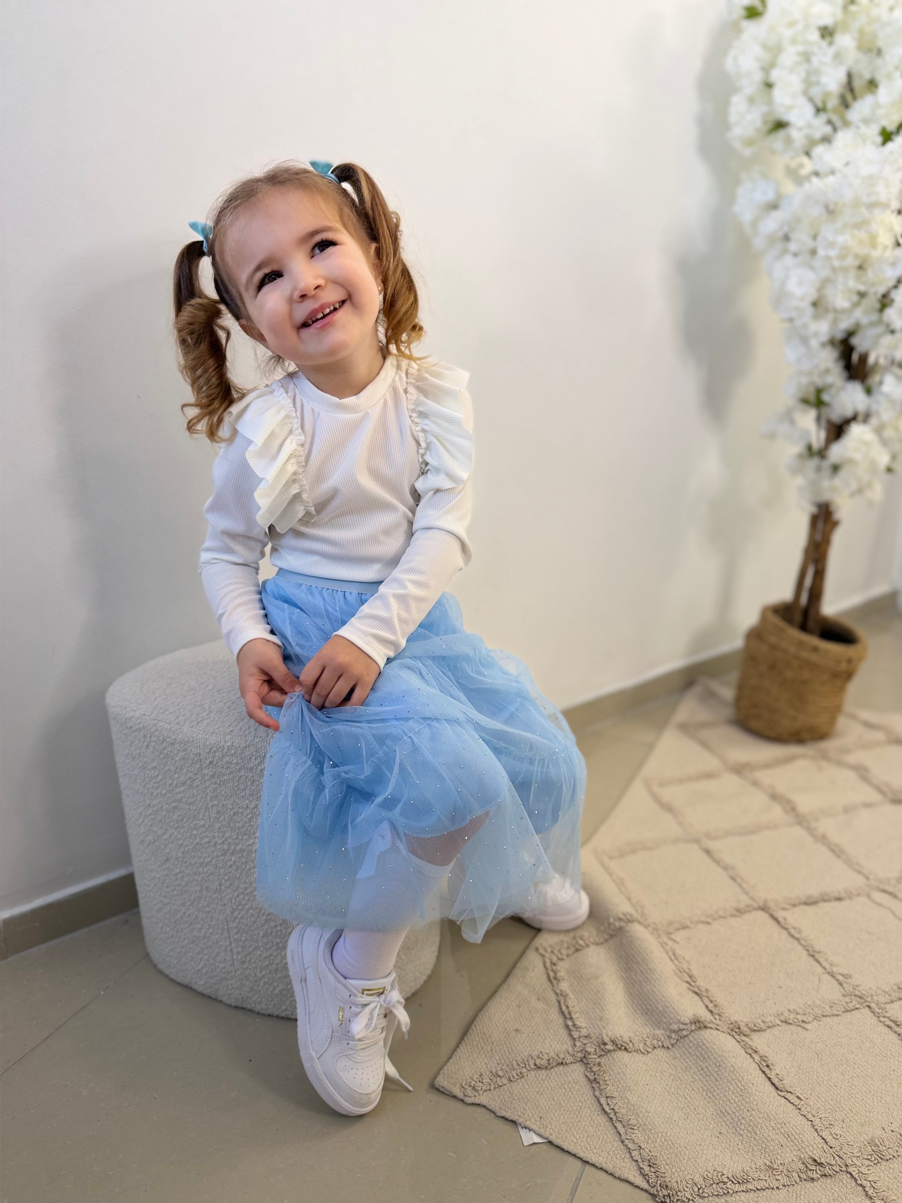 - Petit haut blanc avec volants sur les manches.