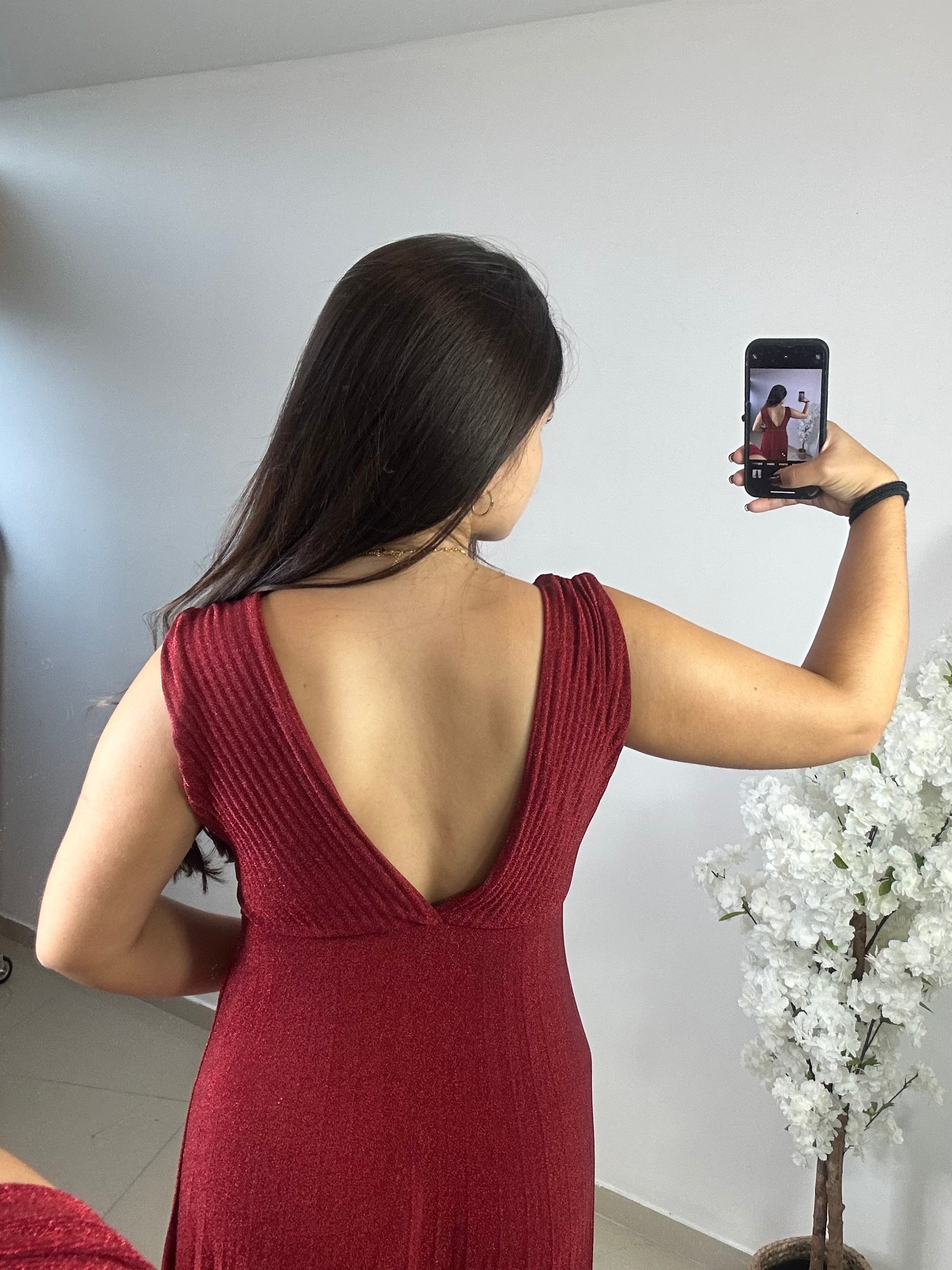 - Robe longue et évasée à paillettes avec coques