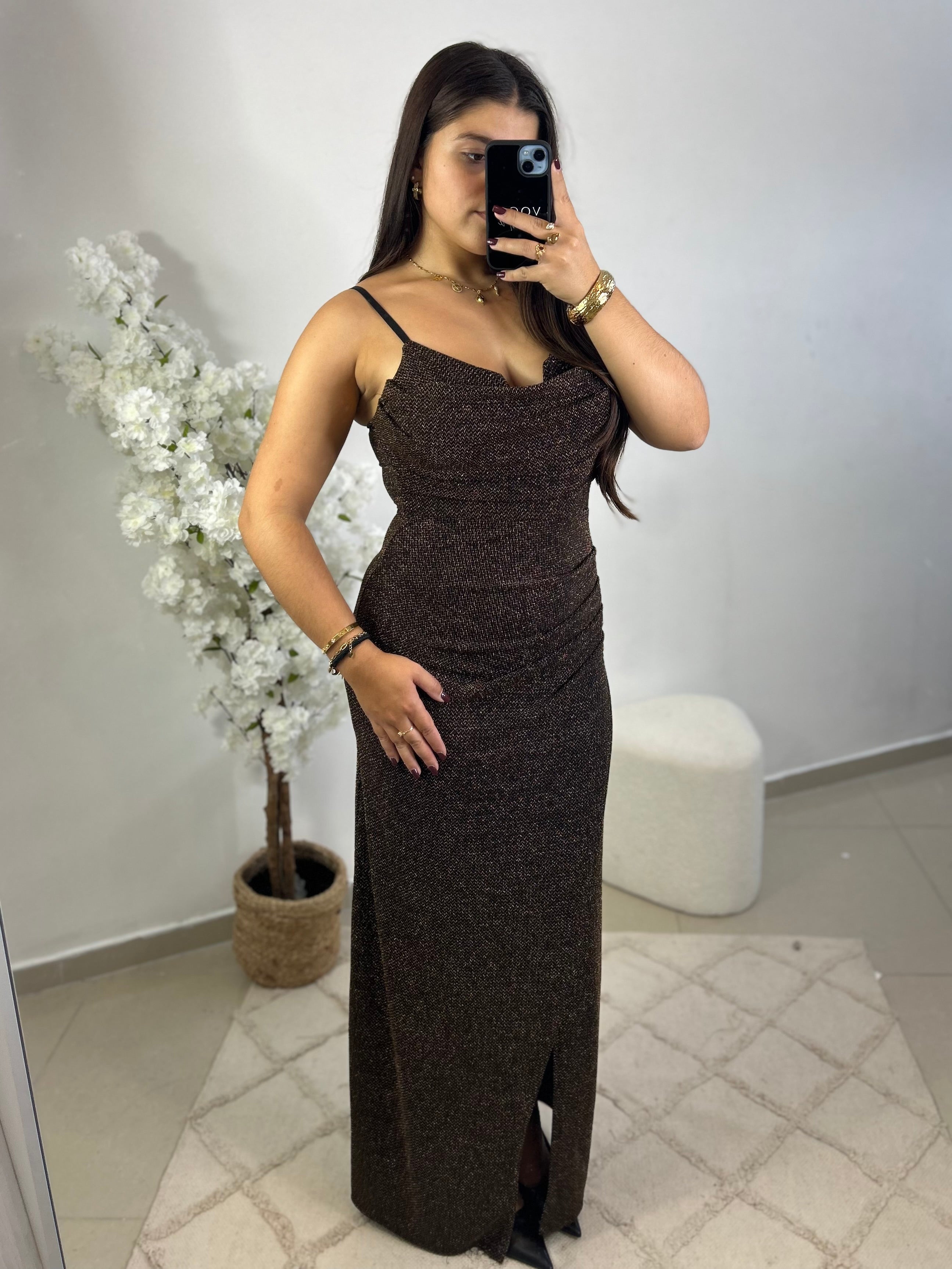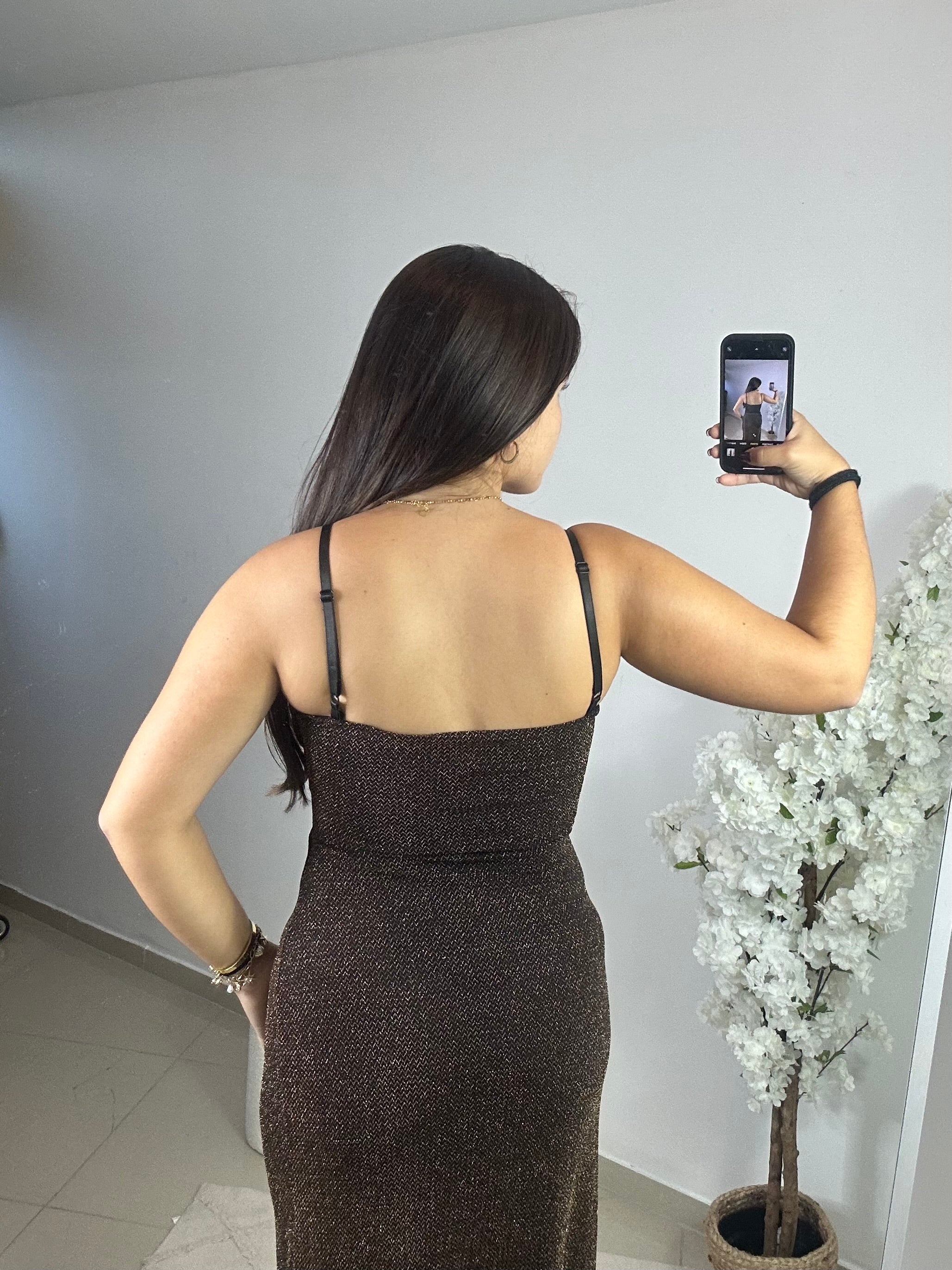 - Robe à bretelles réglables avec coque et armature au décolleté